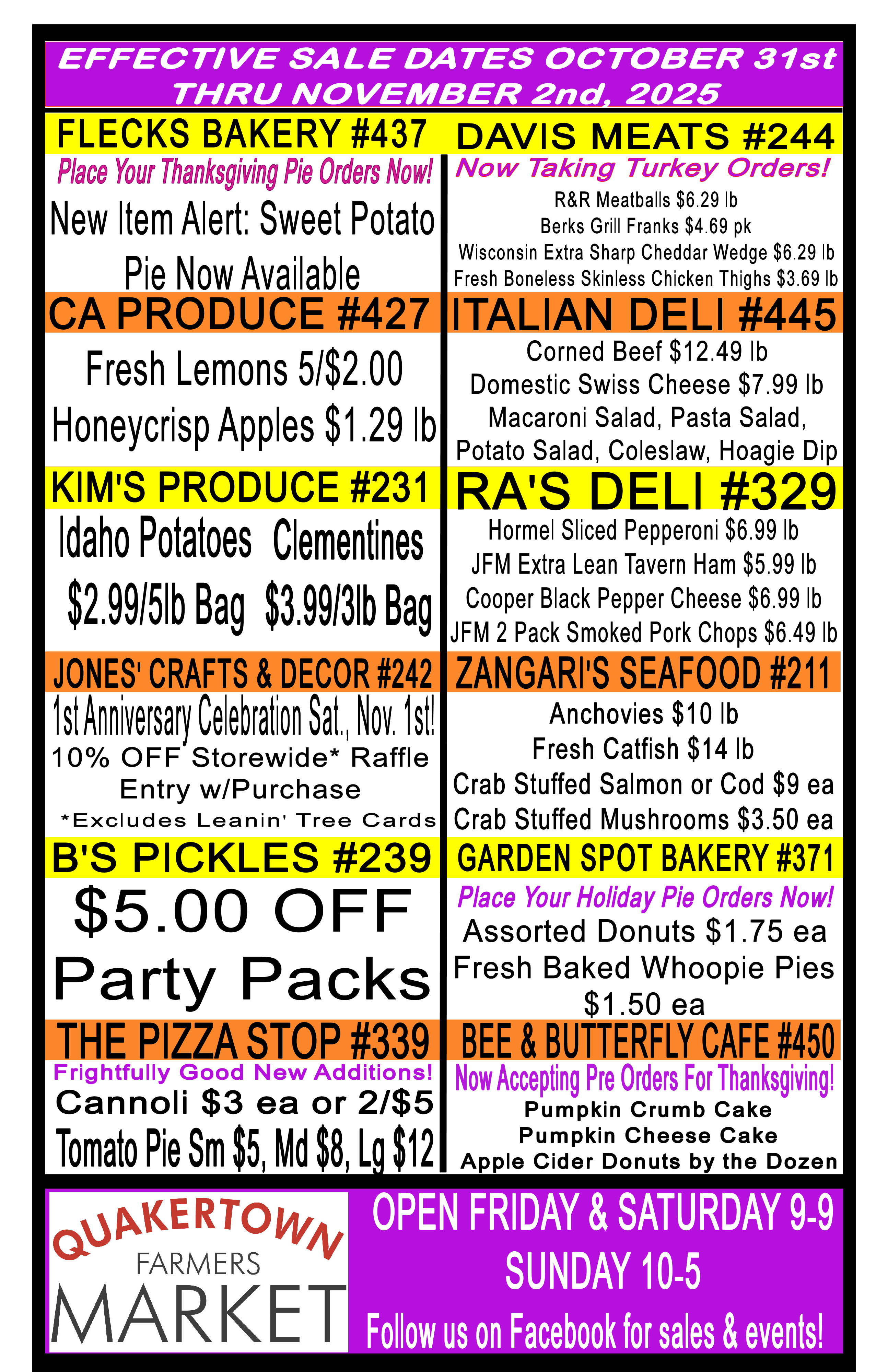 Quakertown's best market deals and discounts can be found at Quakertown Farmers Market. Check back often for savings on fresh produce, meats, baked goods, and more-all at unbeatable prices!