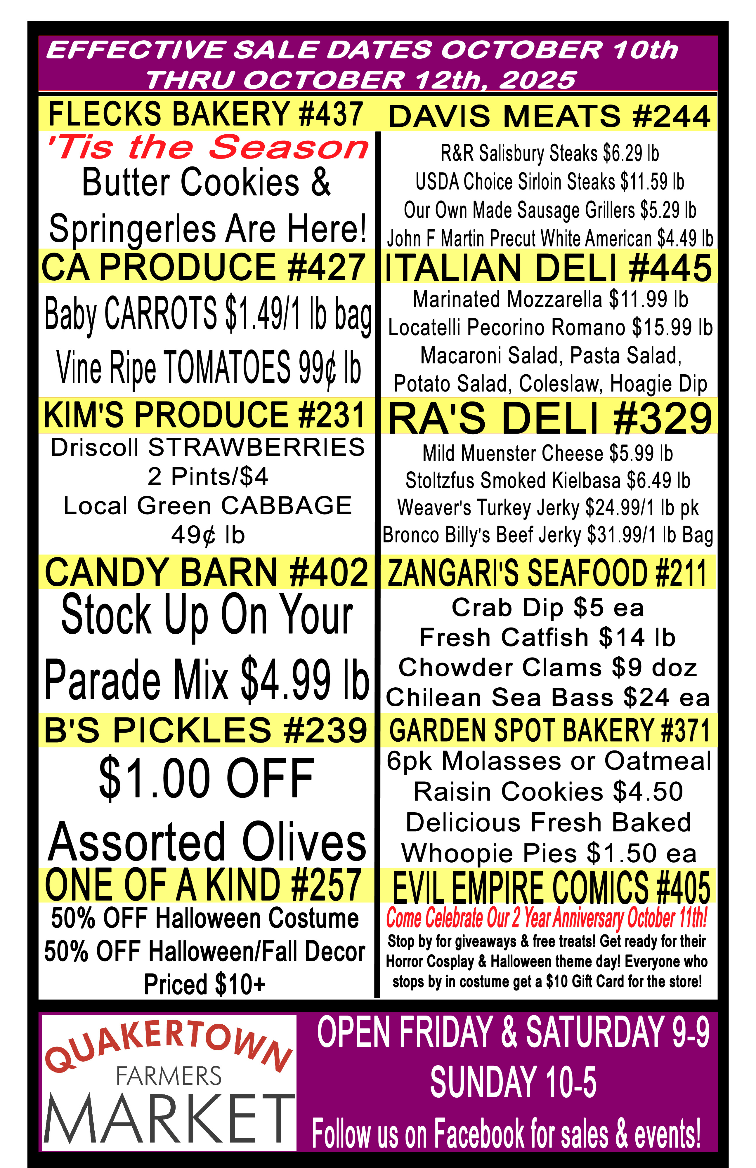 Quakertown's best market deals and discounts can be found at Quakertown Farmers Market. Check back often for savings on fresh produce, meats, baked goods, and more-all at unbeatable prices!